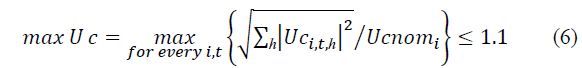 In addition, other constraints are stated to avoid the overstress of the capacitors by complying with recommended bounds by the IEEE Std. 18-2012. This standard state the limits of stress of the capacitors: the maximum peak voltage (Ucpk), the maximum rms voltage (Uc), the maximum current (Ic) and the maximum reactive power (Qc). The maximum of these indices for all capacitors must comply with: