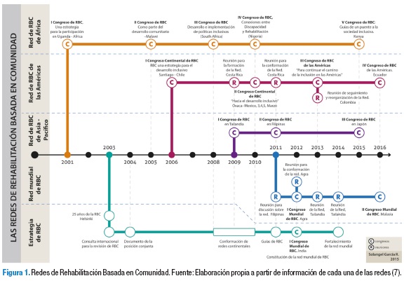 El movimiento mundial de la RBC se soporta en el documento de la posición conjunta en el 2004 (3), su articulación con la Convención sobre los Derechos de las Personas con Discapacidad en el 2006 (4), las orientaciones dadas por las guías de RBC en el 2011 (5), las reflexiones del informe mundial de discapacidad en el 2011 (6), y se consolida en la construcción de redes. La red de RBC de África —CAN por su sigla en inglés—, se constituye aproximadamente desde el 2001; las redes de Asia, las de las Américas y la Red Mundial inician su formación en 2009.
