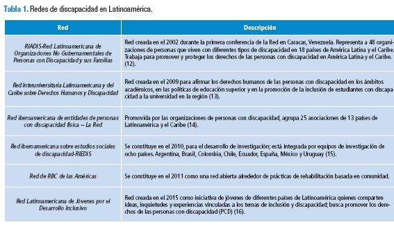 En el desarrollo de la experiencia de la red de RBC de las Américas, esta se encuentra con otras redes (Tabla 1), con las cuales seguro se irán consolidando los movimientos sociales de discapacidad en las Américas.