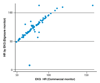 Figure 1 Correlation of heart rate measurements obtained from ECG between the two vital signs monitors. Source: Own elaboration based on the data