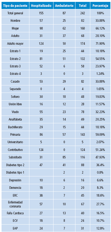 Los resultados de la investigación acerca de los datos demográficos y características generales de la población se presentan en la Tabla 2.