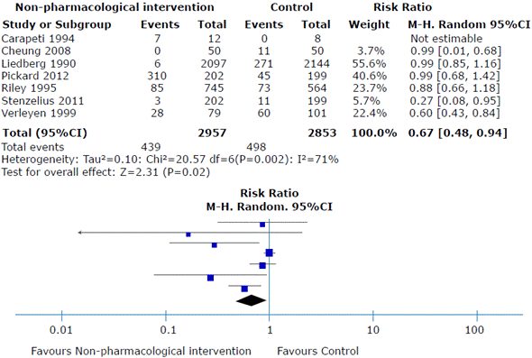 Figure 3 Symptomatic urinary infection as an outcome after performing any of the non-pharmacological interventions during catheter insertion.