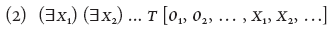 Donde O1, O2, ... son términos observacionales primitivos (constantes de individuo, constantes de predicado, etc.) y H 1, H 2, ... términos teóricos primitivos. Dado que es finitamente axiomatizable podemos pensarla como una única proposición compleja. La propuesta de Ramsey consiste en generalizar existencialmente sobre (1) con el propósito de tener como resultado una oración de la forma