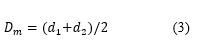 Dónde d1 es el tamaño de abertura de malla del tamiz superior (m) y d2, el tamaño de abertura de malla del tamiz inferior (m).