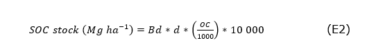 Calculation of stored soil organic carbon. With undisturbed soil samples, the bulk density (Bd) was obtained, which was determined by dividing the weight of the oven-dried sample at 105°C for 48h, for the volume of the cylinder (Equation 1) as suggested by Walkley and Black (1934).