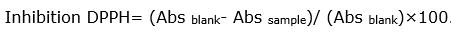 Assessment of antioxidant activity - DPPH radical scavenging. In this method, stable radicals (1,1-diphenyl-2-picrylhydrazyl or DPPH) were used as reagents. Following the method described by Miguel et al. (2014) with a few modifications, briefly, 1ml of the extract with different concentrations was added to 3ml of 0.004% (v/v) DPPH and was kept in the dark at room temperature for 20 minutes. Then, its absorbance was measured at 517nm using a spectrophotometer. Ethanol solvent was used to calibrate the device. DPPH inhibition was calculated using the following formula 1: