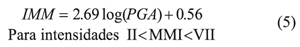Donde: IMM es la Intensidad Mercalli Modificada y PGA es la Aceleración Horizontal Pico.