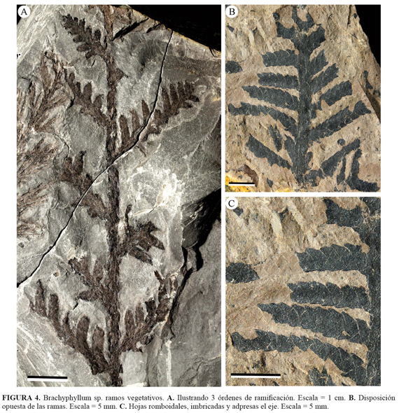 Morfogénero - Brachyphyllum Brongiart, 1828 emend. (Harris 1979) FIGURA (4, A-C)
