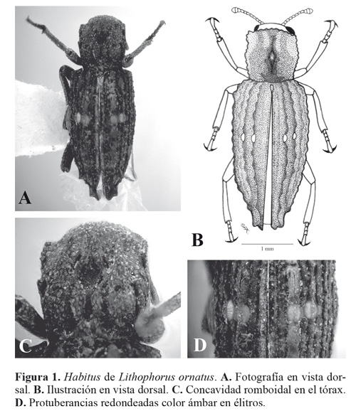 A continuación, se describe el primer registro del género Lithophorus (Coleoptera: Bothrideridae) en Colombia junto con su especie Lithophorus ornatus Arrow, 1909 esta última también un nuevo registro para Suramérica.