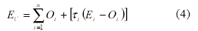 A la estimación que puede obtenerse de los datos conocidos sobre casos similares (Oi) se le suma un término que cuantifica la discrepancia entre la estimación subjetiva sobreconfiada y la estimación estadística (Ei – Oi). Se multiplica este último término por el valor de t, que es un índice de calidad de la predictibilidad p. La Ecuación 5 muestra los cómputos necesarios para calcular la calidad de las estimaciones subjetivas de éxito, que en la Ecuación 4 se denomina t.