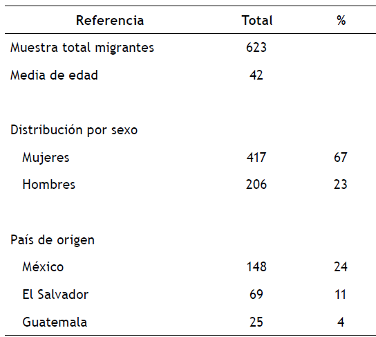 Las características generales de los participantes y del tratamiento de todos los estudios incluidos en la revisión sistemática se resumen en la Tabla 1 y 2. La muestra total de participantes fue de 623 migrantes de origen latinoamericano con una media de edad de 42 años y un 67 % de composición femenina. El país de procedencia con más representación en las muestras del estudio fue la de mexicanos con un 24 %, seguido de personas de El Salvador con 11 % y Guatemala con el 4 %.