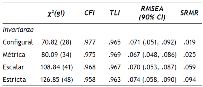 Tabla 2 Bondad de ajuste de los niveles de invarianza factorial