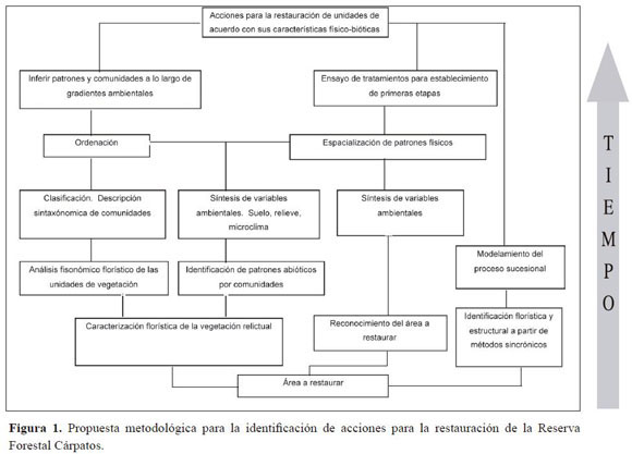 La siguiente fue la metodología seguida para el modelamiento sucesional, esquematizado en la figura 1, como parte de la propuesta metodológica para la identificación de acciones para la restauración de la Reserva Forestal Cárpatos.