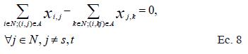 En general, en la formulación para el camino más corto entre dos nodos j y t, se asume como una red dirigida, el costo Ci j es un parámetro asociado a cada arco. Este costo puede ser Ci j = 0, mientras los arcos que no son posibles el valor Ci j = ∞. El problema por resolver se interpreta como el transporte de una unidad de flujo al mínimo costo a través de la red, desde un nodo origen (s) a un nodo destino (t). Matemáticamente, este problema puede ser formulado como un modelo de programación lineal expresado por las siguientes ecuaciones: