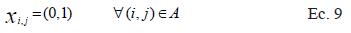 Ci,j: costo de construcción o distancia del arco que conecta el nodo i con el nodo j.