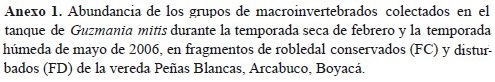MACROINVERTEBRADOS ASOCIADOS A Guzmania mitis L.B. Sm. (Bromeliacea) EN DOS FRAGMENTOS DE ROBLEDAL