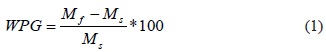 The blocks were oven dried at 103°C for 16 hours and cool to room temperature, thus the weight percent gain (WPG) was calculated as: