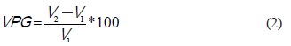 where V1 = initial volume before the treatment.