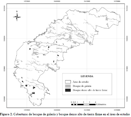 La presente investigación se circunscribe al estudio de dos coberturas boscosas representativas de esta región: los bosques de galería (Bg) y los bosques densos altos de tierra firme (Bda). Los primeros son considerados ecosistemas de importancia para la conservación del recurso hídrico en áreas de planicie asociados a cursos de agua, con altos niveles freáticos (inundables en invierno) que actúan como corredores de dispersión y albergue de la fauna silvestre; adicionalmente, estos ecosistemas proveen el hábitat a invertebrados que son fuente importante de alimento para la fauna acuática y terrestre (Valencia, 1993). Los bosques densos altos de tierra firme configuran otro tipo de ecosistema con factores y recursos distintos, nivel freático bajo (no inundables todo el año) y en la mayoría de los casos constituyen fuentes o nacimientos de agua, los cuales se ciñen a pequeños parches aislados o "islas" en predios privados, siendo en muchos casos el producto de cultivos abandonados de cacao (Theobroma cacao L.) o de café (Coffea arabica L.), donde se permitió que las dinámicas de sucesión natural se encargaran de establecer los actuales bosques. Se presume que ambos cuentan con composición florística, estructura y diversidad distinta, pudiendo albergar organismos que, en algunos casos, se encuentran catalogados en categorías de amenaza de extinción.