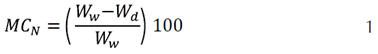 Where MCN is the natural moisture content (%), Ww is the weight of the wet wood mass (g), and Wd is the weight of the dry wood mass (g).