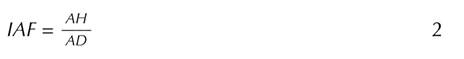 donde IAF es el índice de área foliar, A Hel área de las hojas en m2 y AD el área en que se desarrolló el árbol en m2.