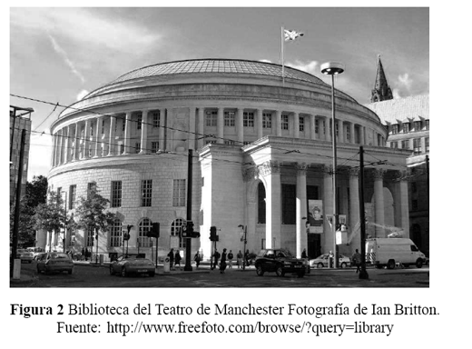 La Biblioteca del Teatro de Manchester20 (1952). En el centro del cilindro se encuentra la sala de lectura. Alrededor de esta gran sala se sitúan pequeñas salas multiusos (Ver Figura 2).21La Biblioteca Brotherton, de la Universidad de Leeds (1930).22 Es la mayor biblioteca de investigación de Gran Bretaña, atrae a estudiantes de todo el mundo por sus ricos y costosos manuscritos recogidos durante sus 100 años de historia. La planta circular es semejante a la de la biblioteca de Manchester. Alrededor de la sala central aparecen dos pisos de salas especializadas en diversas materias. Los depósitos se encuentran bajo la sala principal, y las zonas administrativas en la parte contraria al hall, en una pequeña zona añadida al cilindro. Fue la principal biblioteca de la Universidad, actualmente concentra las áreas de filología, historia moderna y jurisprudencia.