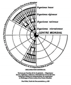 Figura 1 Niveles de organización del Centro Mundial de Documentación. Paul Otlet, Traité de Documentation, p. 420. Tomado de la obra de W. Boyd Rayward (2010).