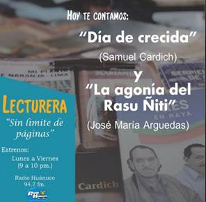 La Biblioteca Municipal de Arequipa con su programa “Lecturas compartidas con biblioteca infantil” provee audiocuentos que son narrados por el voluntariado de la biblioteca vía Spotify en https://spoti.fi/2UzntLA, Anchor en https://bit.ly/30zG0vc y YouTube en https://bit.ly/3dRKst2. De igual manera, a través de sus redes, organiza diversos conversatorios. La Biblioteca Municipal de Cusco “Gustavo Pérez Ocampo” usa la red social de cultura del municipio para comunicar sus actividades, entre ellas, lecturas libres de derecho de autor tanto de producción nacional como internacional, también realizó por el día de la madre un reto con el #Mimamameleyo para saber, en un video de 20 segundos, cuál fue el primer libro que les leyó la mamá. De esta manera, se valora la función mediadora de la madre hacia la lectura. La biblioteca de Piura “Ignacio Escudero” programa una serie de cuentos virtuales denominada “La magia del cuento” vía Facebook: https://bit.ly/2YozB3b. Asimismo, la emisión de audios y videos se ha presentado tanto por medios sociales como por radio y televisión local, para llegar a más ciudadanos de la provincia. La Biblioteca Municipal de Huánuco, mediante su programa “Una biblioteca para todos”, organiza presentaciones de libros de diversos autores de su comunidad por medio de su red social en https://bit.ly/3feI3Zt y cuenta con un espacio radial denominado LECTURERA-“Sin límite de páginas”, transmitido por Radio Huánuco 94.7 FM como lo indica la Figura 4.