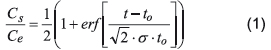 Donde erf[x] es la función error dex, t es el tiempo, t0 es el tiempo donde la concentración de salida es la mitad de la concentración de entrada, σ representa la desviación estándar, Ce y Cs son las concentraciones del analito a la entrada y a la salida, respectivamente. Para observar el modelo que mejor se ajusta a los datos experimentales se realizó un procedimiento presentado por Tejada et al. [20], el cual realiza la suma del cuadrado de los errores y el coeficiente de correlación de los datos experimentales y los modelados.