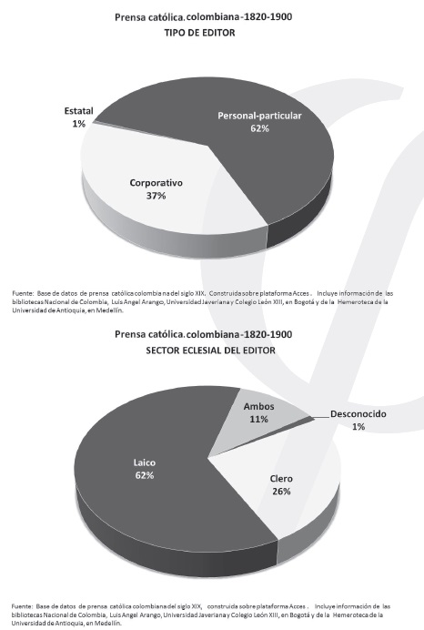 Vemos que todos estos periódicos corresponden a la segunda mitad del siglo XIX, época en la cual se dieron avances en las imprentas, aumentando la capacidad de impresión y reduciendo costos. Además, y esto es evidente, los periódicos que más perduraron fueron editados mayoritariamente por corporaciones, especialmente diócesis y asociaciones de fieles, que contaban con los fondos y apoyos necesarios para sostenerlos, llegando a superar algunos de ellos, coyunturas como las frecuentes guerras civiles y aún las crisis económicas. De aquellos que lograron perdurar más de 10 años solo uno perteneció y fue editado por un particular a título propio. Se trató del periódico El Orden, cuya temática no fue exclusivamente religiosa, editándose en losúltimos años del siglo XIX y comienzos del XX, cuando las posibilidades para que un periódico lograra financiarse por anuncios publicitarios y suscripciones mejoraron sustancialmente. Los demás, pertenecían a las diócesis de Popayán (La semana religiosa), Pamplona (La unidad Católica) Tunja (El revisor Católico) Medellín (repertorio Eclesiástico), Bogotá (El Catolicismo) y Cartagena (El Hebdomadario) y a dos asociaciones laicales respaldadas por la Compañía de Jesús y las élites locales, respectivamente: El Apostolado de la Oración (El mensajero del Corazón de Jesús) y la Sociedad de San Vicente de Paúl (La Caridad).Una más, la revista de los Establecimientos de Beneficencia, era financiada por el Estado, aunque estaba a cargo de organizaciones benéficas compuestas por miembros del clero, laicos y comunidades religiosas. La naturaleza de ser instrumentos «oficiales» de diócesis y corporaciones aceptadas por la mayoría y su temática no preponderantemente político-religiosa, sino dirigida a apoyar procesos de reorganización eclesiástica u obras de beneficencia y piedad popular, les ayudó a ser menos blanco de ataques durante las épocas de conflicto político. Además, curiosamente solo una de las 17 publicaciones referenciadas nació en laúltima década del siglo XIX, caracterizada por su turbulencia política y económica. La mayoría lo hizo en los años 1870 y, sobre todo, 1880, décadas claves de la puesta en marcha del proceso de romanización eclesiástica, para lo cual se necesitaba de la prensa como instrumento de comunicación entre los obispos y su clero, siguiendo los comandos dictados desde el Vaticano.