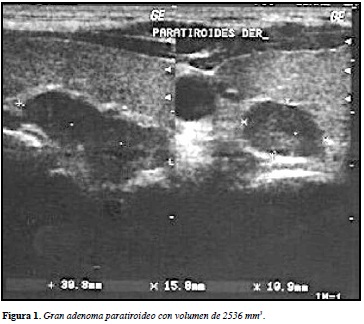 El hiperparatiroidismo secundario (HPS) es una complicación común en pacientes con enfermedad renal crónica estadio 5 en terapia dialítica (ERC-5-D), y su presencia conlleva a una serie de complicaciones óseas y cardiovasculares que atenta contra la salud de los pacientes (1). Diversos esquemas terapéuticos se han propuesto para el tratamiento del HPS, pero las terapias actuales son incapaces de controlar la síntesis y producción de parathormona en un porcentaje importante de sujetos, inclusive con medicamentos de alto costo que impactan fuertemente en los recursos de la salud destinados para este tipo de pacientes (2,3). La evolución histopatológica del HPS implica la generación inicial de hiperplasia difusa y policlonal de las glándulas paratiroides, la cual si no se trata adecuadamente avanza a hiperplasia nodular monoclonal y autónoma (4,5), con reducción muy significativa en el número de receptores al calcio, vitamina D (6,7) y refractariedad terapéutica. La ecografía de paratiroides principalmente con nuevos ecógra-fos de alta resolución permiten identificar fácilmente glándulas paratiroideas hiperplásicas (8), destacándose aquellas con volúmenes mayores a 500 mm3 en las que la hiperplasia nodular autónoma es el patrón predominante, logrando la ecografía sensibilidad del 78,9% y especificidad del 78,8% para tal diagnóstico (9-12). Para el grupo de pacientes con hiperplasia nodular el cual es en un alto porcentaje refractario a las terapias clásicas, e incluso a algunas recientes como el cinacalcet (3,13,14), se han planteado diversas terapias antes de llegar a la paratiroidectomía (2). De ellas se han sugerido útiles: aplicación directa percutánea de calcitriol y etanol en glándulas paratiroides hiperplásicas.