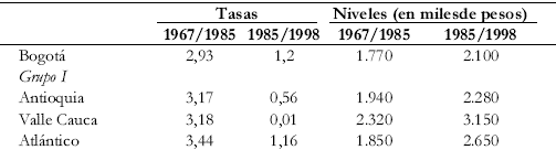 Tabla 3. Colombia: niveles y tasas de crecimiento de la productividad, 1967-1998