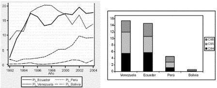 Gráfico 8. Naturaleza y calidad del CII de las regiones colombinas y Ecuador, promedio 1992-2004