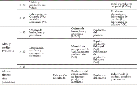 12 Particularmente los sectores 3240, 3320, 3420, 3560, 3610, 3620, 3710, 3720 en la clasificación CIIU Rev. 2.