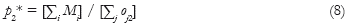 p2* = [Σi Mi] / [Σj oj2] = (I/J) p1 (α/β) (γ/δ) = p1 (p2/p1)e