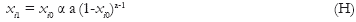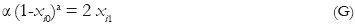 Finalmente, a partir de las ecuaciones (G) y (H) se obtiene α (1-xi0)a = 2 xi0 α a (1-xi0)a-1, de donde podemos extraer: