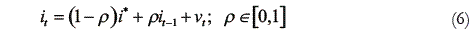 De acuerdo con Clarida, Gali y Gertler (1998), con el fin de capturar el propósito de suavizamiento de los bancos centrales, asumimos que la tasa de interés se ajusta parcialmente a su objetivo: