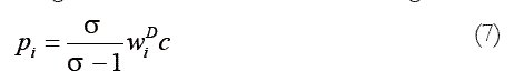 representa el output total producido por la empresa en la localización i y vendido a las diferentes localizaciones j , y wi es el salario nominal dado a los trabajadores industriales en la localización i .