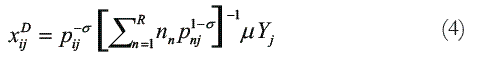 Donde pij (pij = pi Tij es el precio de las variedades producidas en la región i y vendidas en j , Yj representa la renta total de la región j .