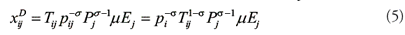 Sin embargo para que xij consD unidades de consumo lleguen a la localización j , tienen que enviarse Ti, jxij consD . De esta manera la demanda efectiva a la que se enfrenta una empresa ubicada en la localización i desde la localización j es