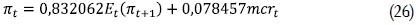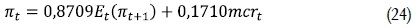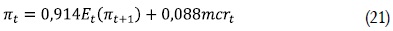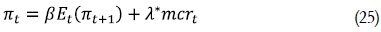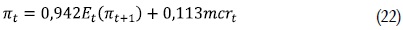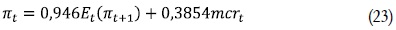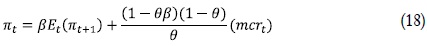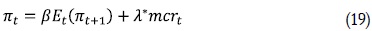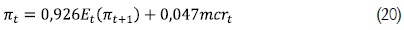 Si se toma logaritmos a ambos lados, se tiene finalmente la brecha de los costos marginales reales respecto a su estado estacionario, mcrt. Teniendo en cuenta lo anterior los resultados de Galí y Gertler (1999) arrojan la siguiente ecuación: