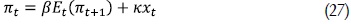 Tenemos finalmente la curva de Phillips neokeynesiana: