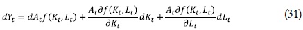 Diferenciado la función de producción agregada tenemos: