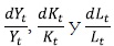 , son las respectivas tasas de crecimiento del producto, del stock de capital y del trabajo. Por otra parte,