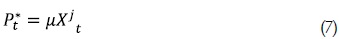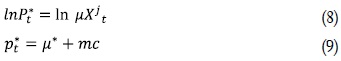 Donde pt* = lnPt*, μ* = lnμ y mc es el costo marginal igual a mc = ntj + wt - αytj con cada variable en los algoritmos.