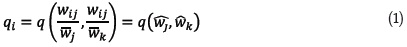 The employment growth (q) is a function of the wage differential between the wage paid in firm (i) belonging to industry (j) with respect to the average wage paid by its corresponding industry (j) and other industries (k).