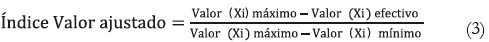 Teniendo como referente la formula anterior, los índices componentes de los IDH ajustados se expresan, finalmente, para los trece departamentos así: