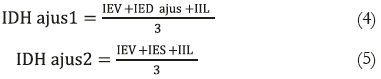 La fórmula general para el cálculo del IDH ajustado1e IDH ajustado2 es: