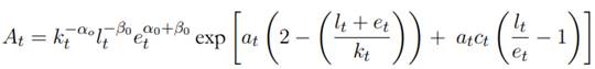 Al comparar las funciones de producción para el PIB, la función Cobb-Douglas de la ecuación (1) y la función de LINEX en la (6), se puede obtener una expresión para el multiplicador A t en la ecuación (1), en términos de K,