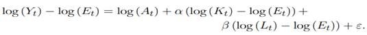 Finalmente, bajo la condición de rendimientos constantes (γ = 1−α−β), se obtiene lo siguiente: